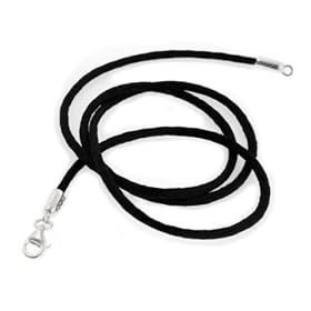 New BLACK Silk Cord Chain (16", 19", 24") Sterling Silver Necklace