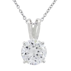 Add a touch of class to any outfit with this dainty solitaire pendant, showcasing a small round of sparkling cubic zirconia in a setting of platinum-dipped sterling silver. Appointed with a graceful split bail, the pendant slides along an 18-inch cable chain. Platinum overlay on the setting and chain gives this piece a luxury finish that's hypoallergenic and tarnish-resistant.